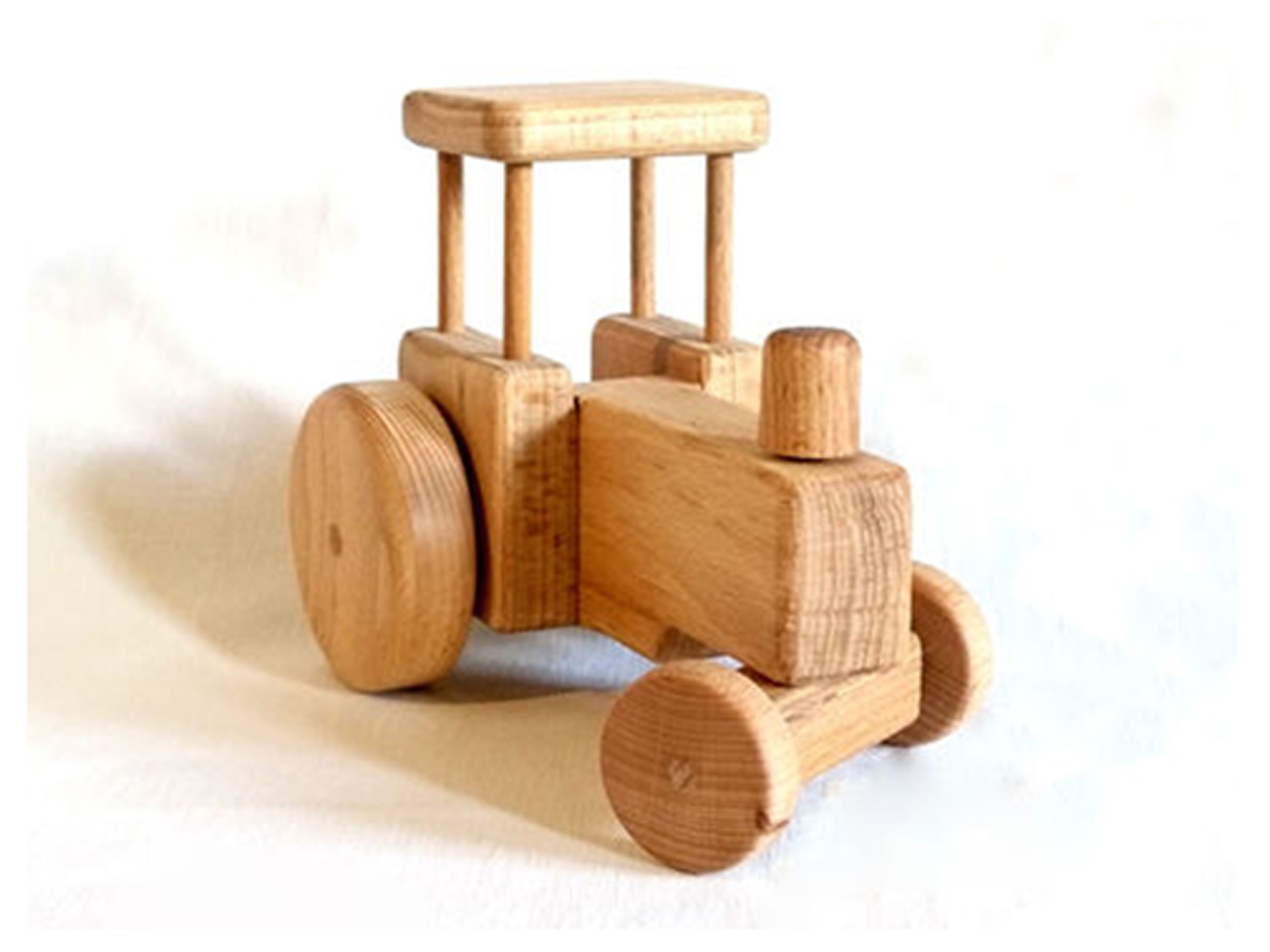 Der Trecker mit Anhänger ist aus massivem Buchenholz gefertigt.